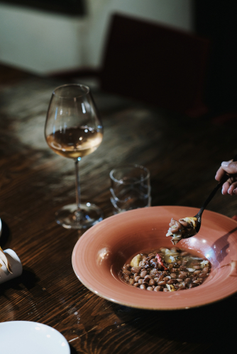 Alla cenere, lenticchie soffiate e caciocavallo Irpino